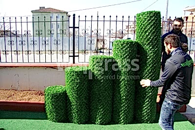 | Rulo Wallgrass | : Rulo şeklinde üretilmiş olan wallgrass montajı yapılacak yere önce köşelerden tutturulur daha sonra 50 cm aralıklarla özel wallgrass bağlantı telleriyle sabitlenir. |